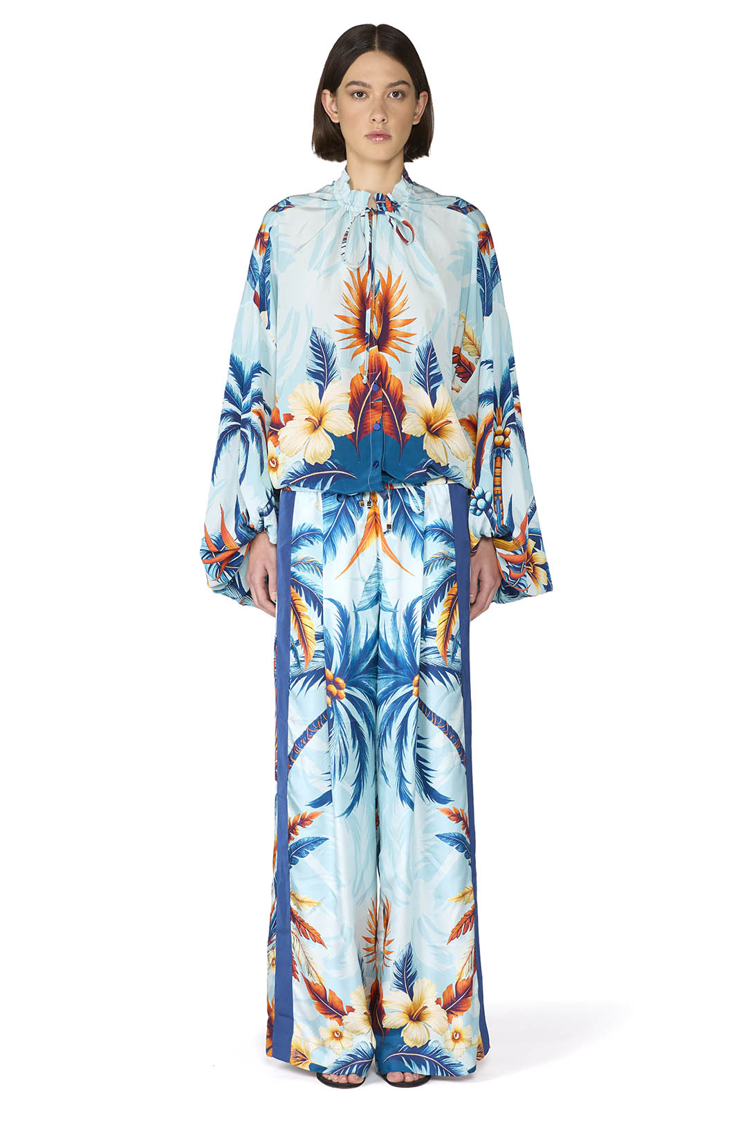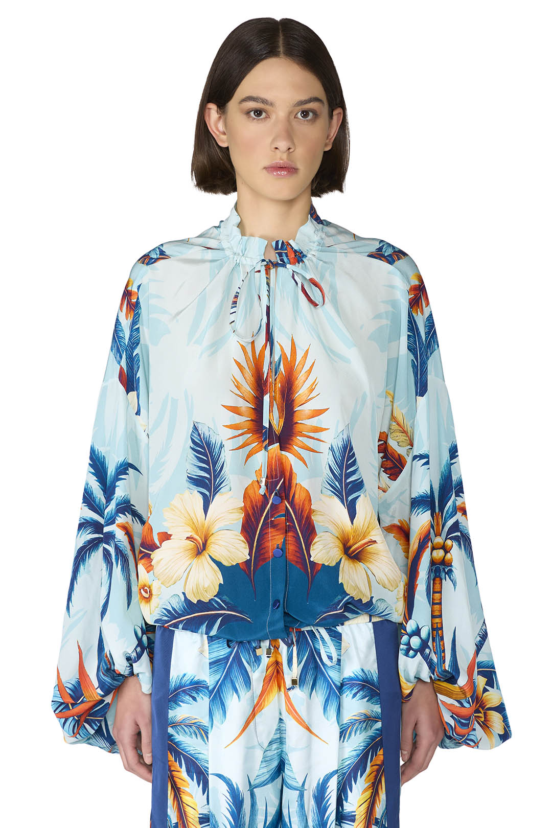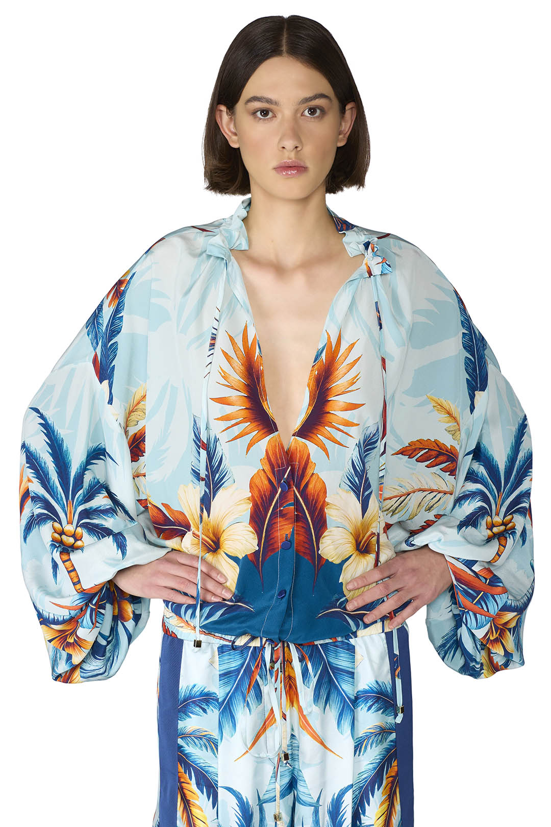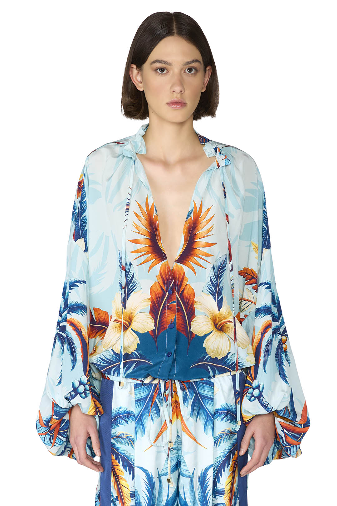 Crafted from a luxurious silk crepe this oversize shirt features voluminous balloon sleeves that add a contemporary, elegant touch. The lightweight fabric drapes effortlessly for a relaxed yet refined silhouette.
