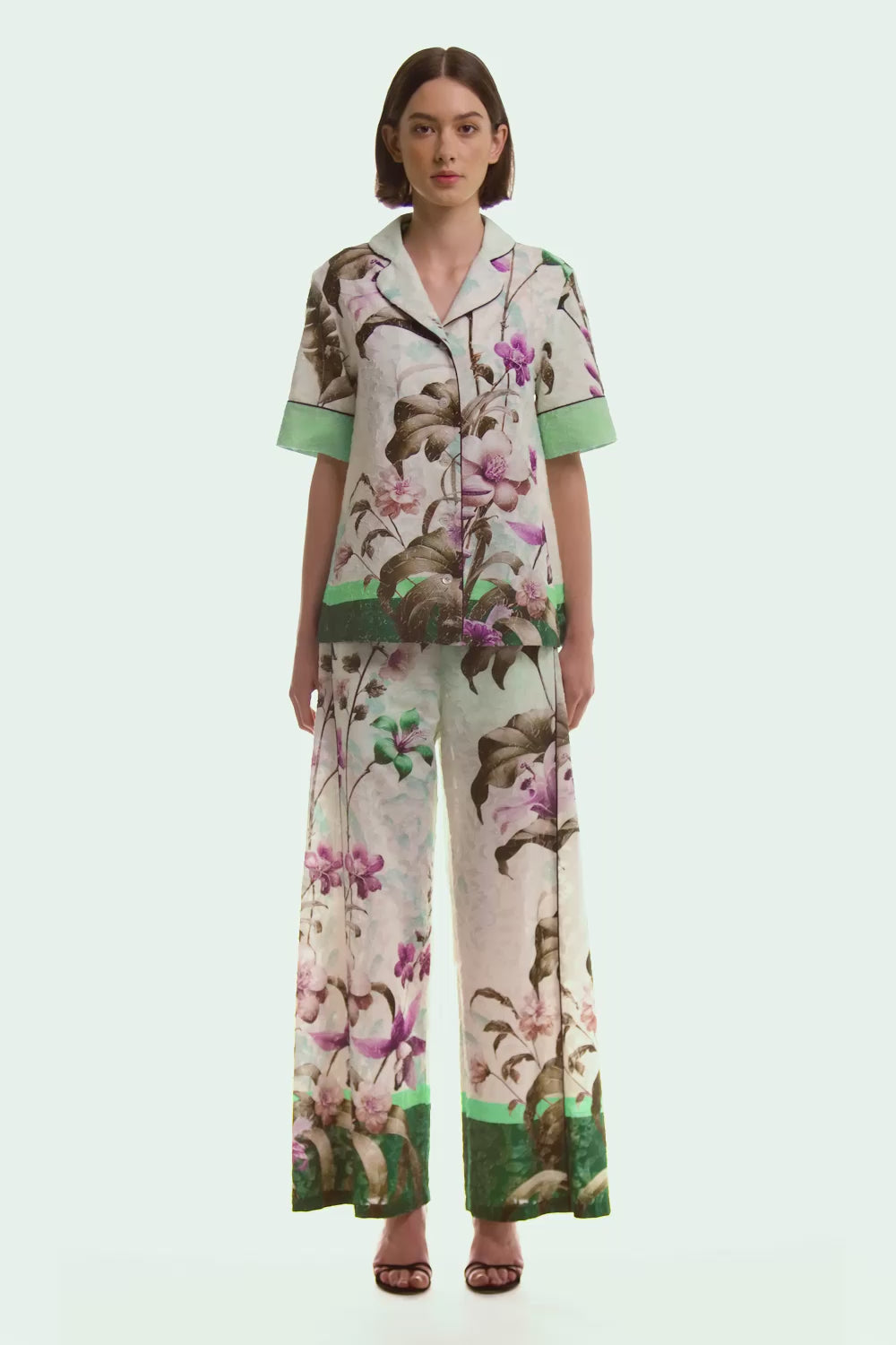 These cotton fil coupé wide-leg trousers feature an elastic waistband and inset side panels at the hips for a relaxed, fluid silhouette. Designed for comfort with subtle structural details.